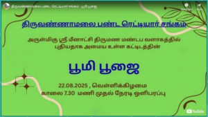 To construct Meenakshi Niketan complex in th erstwhile TPR Thirumana Mandapam site, BOOMI POOJA conducted on Friday, 28th August 2025.